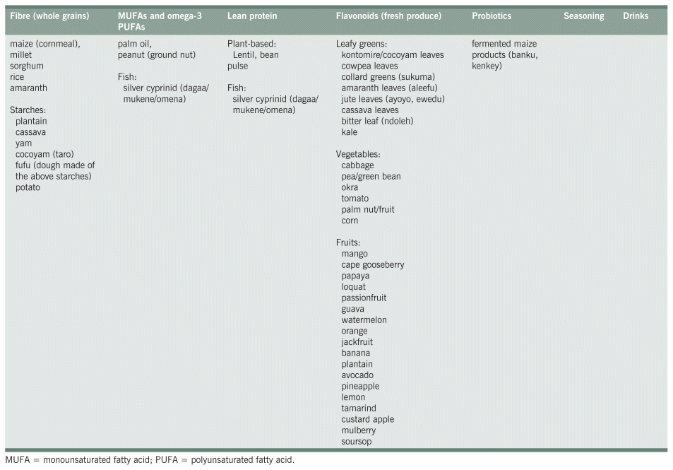 TABLE 3 African Heritage Diet Eating Paradigm Framework – Equivalent foods for each component of the Mediterranean Diet25–32