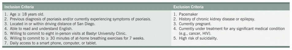 Objective: To examine the impact of a 7-week HRVB protocol on skin severity (SS), QoL, and mental health (MH) in individuals with psoriasis and determine the sustainability of any outcomes post-intervention.