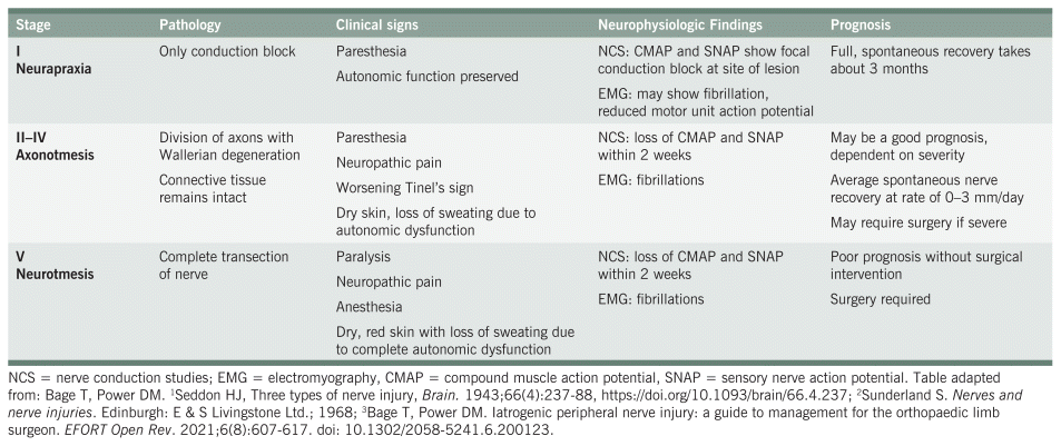 TABLE 1 Seddon and Sunderland Classification of Nerve Injury1,2,3