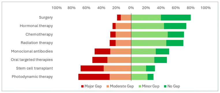 Conclusion: This survey highlights oncology-related knowledge gaps, which were generally highest for less commonly used and studied therapies, and strong clinician support for resource development. Varied resource formats may accommodate different learning styles and improve dissemination.
