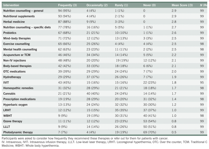 TABLE 4 Cancer Stream, Use or Recommendations of Naturopathic Interventions