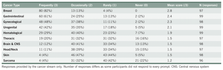 TABLE 3 Cancer Stream, Clinical Practice