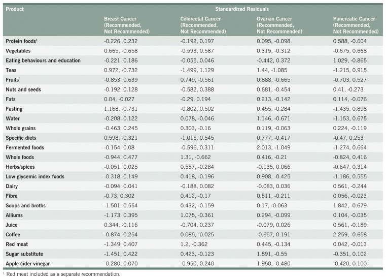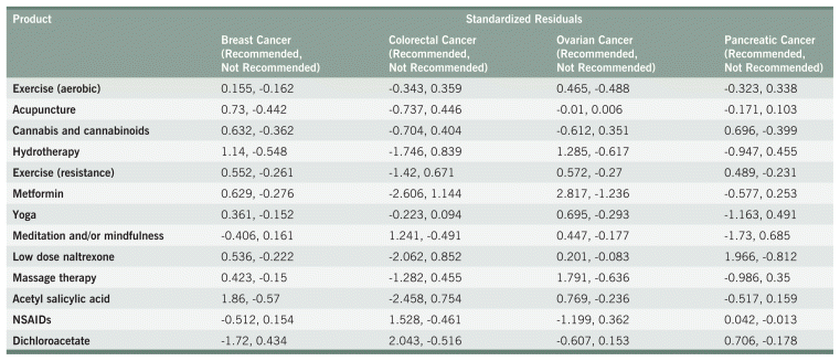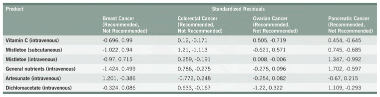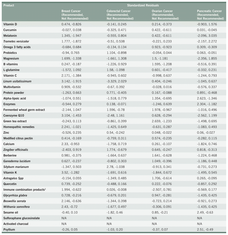 TABLE A2 Standardized Residuals for Natural Health Product Recommendations