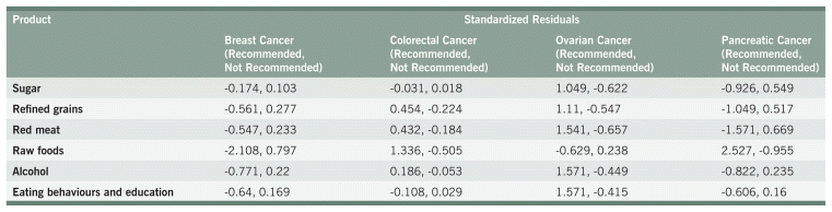 TABLE A6 Standardized Residuals for Nutrition Discouragement Recommendations