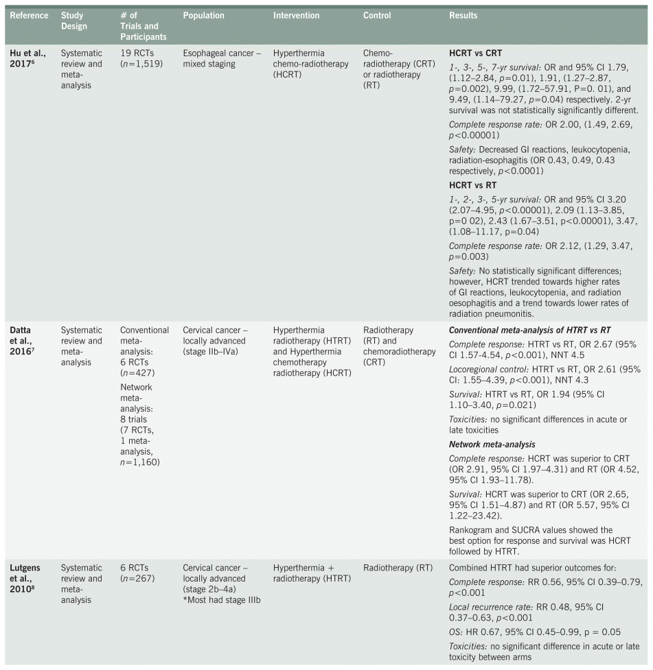 6. Hu Y, Li Z, Mi DH, et al. Chemoradiation combined with regional hyperthermia for advanced oesophageal cancer: a systematic review and meta-analysis. J Clin Pharm Ther. 2017;42(2):155–164.