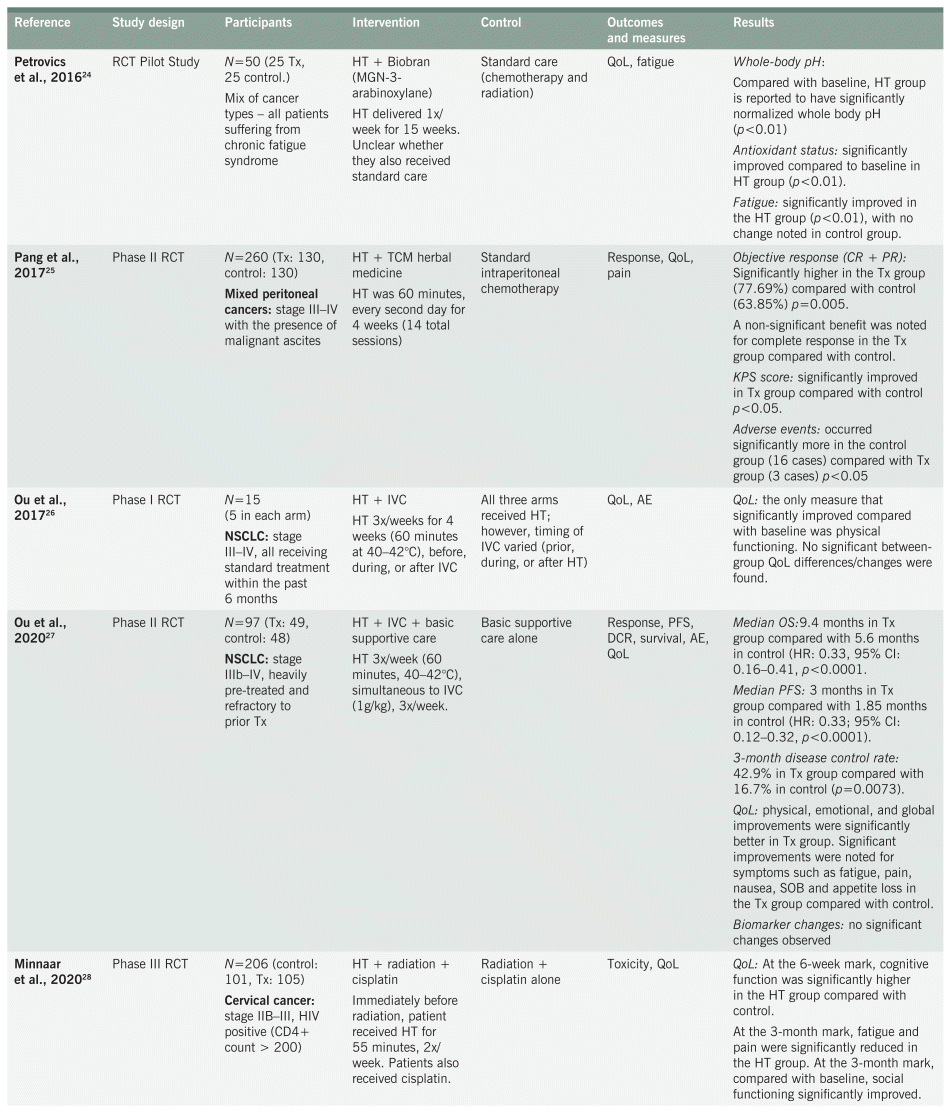 TABLE 2 Randomized controlled trials of locoregional hyperthermia (LRHT) for cancer